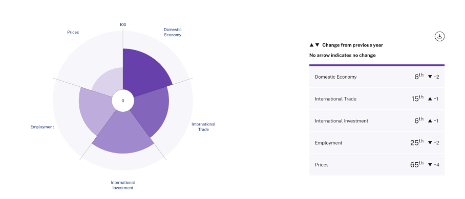 Das Ranking vergleicht jährlich die wirtschaftliche Leistungsfähigkeit und institutionelle Stärke von 67 Volkswirtschaften.